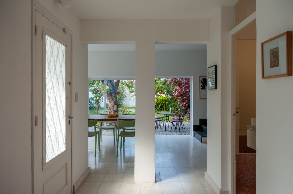3 – Vincular el frondoso patio tres con el interior de la casa mediante la apertura de un vano cuyas dimensiones implicaron trabajosas operaciones en lo que respecta a la estructura portante.